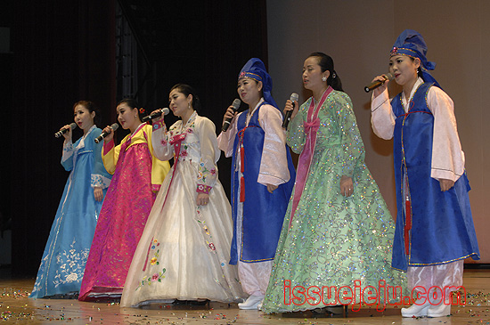 한라민족예술단원들이 '다시만나요'를 부르며 마지막 무대를 장식하고 있다. |