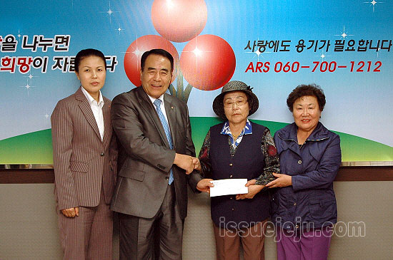 권 할머니는 그 동안 남의 밭에 다니며 감귤, 파, 마늘, 양파, 버섯, 감자, 당근 등 수 많은 밭농사 일을 거들어주고 받은 품삯을 모아 이날 성금을 기탁하게 된 것이다.