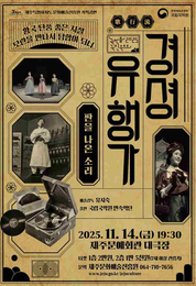 100년 전 유성기 음반 속 노래가 제주 무대에 오른다. 제주특별자치도문화예술진흥원은 11월 14일 오후 7시 30분 문예회관 대극장에서 국립국악원의 ‘경셩유행가-판을 나온 소리’를 개최한다. 이번 공연은 국립국악원이 주관하는 ‘2025 국악을 국민 속으로’ 공모사업에 제주문화예술진흥원이 선정되면서 성사됐다. 1910~1920년대 유성기 음반에 수록된 유행가를 복원해 구성한 무대로, 근대 ‘신식 극장’을 모티브로 한 연출을 통해 관객들에게 100년 전 시대로 떠나는 시간 여행 경험을 선사한다. 당시 경성(서울)에서 유행했던 노래들은 유성기 음반이라는 신기술을 통해 전국으로 퍼져나갔다. 공연은 이 음원들을 현대적으로 복원하면서도 당대 극장 분위기를 재현해 근대 대중문화의 태동기를 생생히 보여준다. 이희진 제주문화예술진흥원장은 “국립국악원의 수준 높은 전통음악 공연을 가까이에서 만나볼 수 있는 특별한 기회”라며 “많은 도민이 함께해 국악의 멋과 흥을 느껴보기 바란다”고 말했다. 공연 예매는 문화예술진흥원 예매시스템(www.eticketjeju.co.kr)을 통해 10월 29일 오후 2시부터 가능하다. 관람료는 1층 2만원, 2층 1만 5,000원이다. ‘제주특별