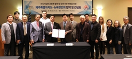 제주특별자치도가 미국 동부 50만 한인을 대표하는 뉴욕한인회와 손잡고 경제·관광·문화·교육 분야 글로벌 협력 네트워크를 본격 가동한다. 제주도는 19일 오후 4시(현지시간) 미국 워싱턴DC 소재 하얏트 플레이스 호텔에서 뉴욕한인회와 상생 교류발전 업무협약을 체결했다. 뉴욕한인회는 뉴욕 대도시권과 뉴저지, 코네티컷 일부 지역 약 50만 한인을 대표하는 비영리단체로 한인 권익보호와 문화·경제·교육·복지사업, 이민자 지원 등을 담당한다. 제주도가 미주지역 한인회와 협약을 맺은 것은 지난해 10월 미주한인회총연합회에 이어 두 번째다. 협약식에는 오영훈 지사와 이명석 뉴욕한인회장을 비롯한 양측 관계자 20여 명이 참석해 다양한 분야에 대한 구체적인 협력방안을 논의했다. 주요 내용은 △제주형 휴가지 원격근무(워케이션)·배움여행(런케이션) 프로그램 홍보 및 참여 촉진 △관광·지역경제 활성화를 위한 네트워크 협력 사업 △협약기관 간 지속가능한 공동체 발전 및 상생 기반 마련 등이다. 오영훈 지사는 “뉴욕한인회와의 업무협약은 한인사회 발전과 고국 연결을 강화하는 계기”라며 “제주의 미래와 미주 한인사회의 번영이 서로에게 힘이 되고, 한미 양국 관계 발전에도 기여할 것”이라고