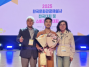 제주 문화관광해설사 2명이 전국대회에서 나란히 수상했다. 제주어로 풀어낸 신화 해설과 전문적인 해설 역량이 전국 무대에서 인정받았다. 제주특별자치도는 충청남도 부여군 국립부여박물관 사비나루공연장에서 열린 ‘2025년 한국문화관광해설사 전국대회 및 스토리텔링대회’에서 제주도문화관광해설사협회 소속 강충민 해설사가 은상을 수상했다고 밝혔다. 한국문화관광해설사중앙협의회 주최, 충남문화관광해설사협회 주관으로 열린 이번 대회에는 전국 문화관광해설사 500여 명이 참가했다. 문화체육관광부와 한국관광공사, 충남 부여군이 후원했다. 1부 시상식에서 박명희 해설사가 지역 관광 발전에 기여한 공로로 한국관광공사 사장상을 받은데 이어, 2부 스토리텔링 대회에서 강충민 해설사는 ‘제주신화 잇수다’를 주제로 제주 고유의 신화를 제주어와 표준어로 병행 해설하며 관객들의 큰 호응을 얻었다. 제주도는 이번 수상으로 제주어 기반 해설 콘텐츠의 가치를 전국에 알리는 계기를 마련했다. 제주어는 유네스코 소멸위기 언어로 지정된 문화자산으로, 관광 해설에 제주어를 접목하는 시도는 제주 고유의 정체성을 전달하는 효과적 수단으로 주목받고 있다. 김양보 제주도 관광교류국장은 “문화관광해설사는 관광객이