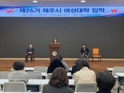 제주시는 지난 12일 제주대학교 아라컨벤션홀 대회의실에서 ‘2026년 제26기 제주시 여성대학 입학식’을 개최했다. 이날 입학식은 위탁운영 기관인 제주대학교 김인중 평생교육원장과 입학생 등 48명이 참석한 가운데 진행됐다. 제주시 여성대학은 급변하는 사회 변화에 부응하고 여성의 잠재 역량을 키울 수 있도록 다양한 분야의 교육과정을 지원해 지역사회 공동체 리더로 성장할 기회를 제공하고 있다. 학사 운영은 3월 12일 개강을 시작으로 매주 목요일 오후 7시부터 2시간씩 교육이 진행되며, 12월 3일까지 총 29주 과정으로 운영된다. 주요 강좌는 ▲자기계발 ▲경제 ▲인문 ▲리더십 ▲법률 ▲젠더역량 ▲자치활동 ▲현장체험 등으로 구성되며, 매주 각 분야 전문강사를 초빙해 강의와 프로그램을 진행한다. 제주시 여성대학은 1999년도 처음 개설된 이후 지난해까지 1,750명의 수료생을 배출했다. 안진숙 여성가족과장은 “여성의 사회참여가 늘어나면서 배움에 대한 관심도 높아지고 있다”며, “앞으로도 여성대학의 내실 있는 교육사업 추진을 위해 노력하겠다”고 말했다.