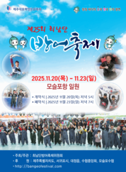 ‘제25회 최남단 방어축제’가 20일 ‘청정 바다의 흥과 멋과 맛의 향연’을 주제로 서귀포시 대정읍 모슬포항 일대에서 개막한다. 23일까지 4일간 열리는 이번 축제는 제주 청정 해역에서 잡아 올린 방어의 풍미를 맛보고, 제주 바다 문화를 체험할 수 있는 대표 수산물 축제다. 최남단방어축제위원회(위원…