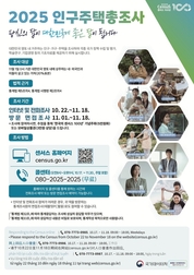 서귀포시는 오는 10월 22일(수)부터 11월 18일(화)까지 ‘2025 인구주택총조사’가 실시된다고 밝혔다. 조사 대상은 서귀포시 17개 읍면동을 기준으로 20% 표본으로 추출되어 기숙·사회시설을 포함하여 총 409조사구, 19,684가구가 대상으로 선정되었다. 조사 방식은 인터넷·전화와 방문 면접을 병행한다. 10월 22일부터 31일까지 10일간 1차 인터넷·전화 조사가 이루어진다. 먼저 비대면 조사를 진행한 뒤 미응답 가구를 대상으로 조사원이 직접 방문한다. 표본으로 선정된 가구에 조사 안내문과 큐알(QR)코드가 포함된 우편물이 발송되었으며, 응답자는 해당 안내문에 기재된 참여 번호를 이용해 스마트폰으로 큐알(QR)코드를 인식하거나 인구주택총조사 누리집에 접속해 조사에 참여하면 된다. 인터넷·전화 조사에 응답하지 않은 가구를 대상으로는 다음 달 1일부터 18일까지 조사원이 직접 방문해 방문 면접 조사를 진행할 예정이다. 서귀포시 관계자는 “이번 인구주택총조사는 대한민국 센서스 100년을 맞아 더욱 뜻깊고 중요한 조사로, 향후 국가 정책 수립의 핵심 기초 자료가 되는 중요한 조사로 정확하고 신뢰도 높은 통계 생산을 위해 서귀포시민 여러분의 적극적인 참여를