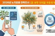 제주특별자치도 농업기술원(원장 김태균)이 2026년산 노지감귤의 안정적인 수급 관리와 정밀한 생산량 예측을 위해 ‘2026년 노지감귤 관측조사’를 본격 추진한다. 올해 관측조사의 핵심은 조사 전 과정에 디지털 자동화 기술을 도입한다는 점이다. 지난해까지는 수작업 중심으로 데이터를 수집하고 자동화 기술은 시범 도입을 통한 모델 정교화 단계에 머물렀으나, 올해부터는 자동화 계측값과 현장 실측값을 비교·검증하는 방식으로 조사 정확성과 현장 신뢰도를 동시에 확보할 계획이다. 자동화 방식은 조사원이 스마트폰으로 조사 나무를 촬영해 ‘제주DA’ 플랫폼에 올리면 결과가 즉시 산출되는 구조다. 도내 320개 조사 포장 가운데 대표성을 갖는 포장을 선정해 전문인력 54명이 투입되며, 5월 착화량 조사·8월 열매 조사·11월 열매 조사 등 총 세 차례 진행된다. 조사 시기별로 적용 기술도 다르다. 5월 화엽비(花葉比) 조사는 이미지 업로드만으로 잎 대비 꽃의 비율이 자동 산출된다. 8월과 11월 열매 조사에는 ‘3D 가우시안 스플래팅(3D Gaussian Splatting)’ 기술이 적용돼 과실 수와 크기를 입체적으로 분석하고 실측 수준의 정밀도를 구현한다. 수집된 모든 데이