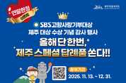 제주특별자치도는 ‘제1회 SBS 고향사랑기부대상’ 광역시도 부문 대상 수상을 기념해 13일부터 연말까지 ‘올해 단 한 번, 제주 스페셜 감사 답례품’을 한시적으로 출시한다. 제주도는 고향사랑기부제를 선도적으로 이끈 공로를 인정받아 대상을 받았다. 시상식은 13일 서울 동대문디자인플라자(DDP) 아트홀 2관에서 열렸다. 이번 수상을 기념해 제주도는 10만원 이상 기부자들에게 감귤 1박스와 흑돼지 선물세트, 오메기떡, 감귤과즐 중 하나를 더한 스페셜 답례품 패키지를 증정할 계획이다. 스페셜 답례품은 감귤 패키지 3종 상품으로 구성됐다. △감귤 1박스+흑돼지 선물세트 △감귤 1박스+오메기떡 선물세트 △감귤 1박스+감귤과즐 선물세트다. 답례품은 제주감귤농협·제주돈육수출센터·블루탐·하효살롱협동조합 답례품 공급업체 및 제주경제통상진흥원과의 협업을 통해 마련됐다. 오영훈 지사는 “이번 수상은 고향사랑기부제 활성화를 위한 다양하고 꾸준한 노력의 결실”이라면서 “기부자들의 관심과 사랑에 보답할 수 있도록 제주 고향사랑기부제 운영에 최선을 다하겠다”고 말했다. 제주 고향사랑기부는 고향사랑e음(https://ilovegohyang.go.kr)이나 웰로(https://www.we