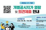 서귀포시는 2026년 1월 1일 기준 개별공시지가 산정을 완료하고, 3월 18일부터 4월 6일까지 개별공시지가 열람 및 의견 제출 기간을 운영한다고 밝혔다. 개별공시지가는 토지에 대한 재산세와 양도소득세, 개발부담금 등을 산정하는 기준이 된다. 이에 따라 토지 소유자와 이해관계인은 공시지가를 확인하고 의견을 제출할 수 있다. 이번 개별공시지가 열람 대상은 서귀포시 관내 238,609필지로, 산정된 필지의 100%에 대해 감정평가사의 검증을 실시해 공시지가의 정확성과 공정성을 높였다. 공시지가는 국토교통부 부동산공시가격 알리미(https://www.realtyprice.kr)에서 확인할 수 있으며, 읍·면사무소 및 동 주민센터에서도 열람할 수 있다. 서귀포시는 시민 편의를 위해 △개별공시지가 365 소통 창구 △문자 알림 서비스 신청 게시판을 운영하고 있다. 문자 알림 서비스를 신청하면 의견 제출 기간과 이의신청 기간 등 주요 일정을 문자로 안내받을 수 있다. 개별공시지가에 대한 의견이 접수되면 감정평가사의 재검증 후 부동산가격공시위원회 심의를 거쳐 2026년 4월 30일 최종 결정·공시될 예정이다. 서귀포시 관계자는 "개별공시지가는 시민 재산권과 직결되는 중