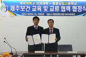 제주대학교 의과대학(학장 홍성철)과 중문상업고등학교(교장 김성익)는 10일 의과대 교수회의실에서 교류협정을 체결했다. 중문상고는 내년부터 중문고로 교명을 변경하고 의료 기초전문 인력을 양성하는 특성화고로 전환한다. 김정호 기자 / 저작권자ⓒ이슈제주/ 무단전재 및 재배포금지