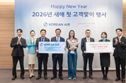 “병오년(丙午年) 새해 첫 고객님, 환영합니다.” 대한항공은 1일 대한항공 항공편을 이용해 한국에 들어온 첫 승객을 환영하는 ‘새해 첫 고객 맞이 행사’를 열었다. 대한항공은 2026년 1월 1일 새벽 인천국제공항에서 ‘새해 첫 고객 맞이 행사’를 열었다. 사진은 좌측 세 번째부터 송기원 인천여객서비스지점장, 고광호 여객사업본부장, 새해 첫 고객, 이동협 여객운송부 담당 등 관계자들이 기념사진을 촬영하는 모습 올해 행운의 주인공은 KE864편으로 베이징에서 출발해 이날 새벽 인천국제공항 제2여객터미널에 도착한 20대 중국인 쉬 쑤앙옌(Xu Shuangyan) 씨다. 대한항공은 쉬 씨를 위해 베이징 왕복 프레스티지 항공권 2매와 그랜드 하얏트 인천 그랜드 스위트 킹 객실 1박 숙박권, 환영의 꽃다발 등 특별한 선물을 준비했다. 환영 행사에는 고광호 여객사업본부장, 송기원 인천여객서비스지점장, 이동협 여객운송부 담당 등 대한항공 주요 임직원들이 참석해 축하의 의미를 더했다. 쉬 씨는 “평소에 한국 문화에 관심이 많았는데, 세계적으로 인기가 많은 한국 관광지에 직접 가보고 한국 문화를 즐기는 시간을 가지려고 한다”며 “드라마와 영화에서 본 주요 관광지들을 여행하고